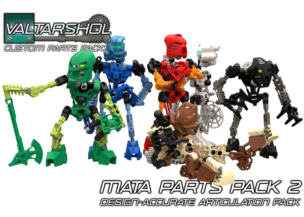 98 custom parts made in part designer for use in stud.io, recreating the original Toa Mata designs but engineered for full articulation, as well as PDF instructions. Featuring parts for: